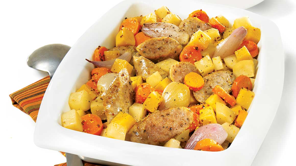 - Cuire jusqu'à ce que les légumes soient tendres et que les saucisses soient chaudes. Servir avec une salade de chou rouge.
